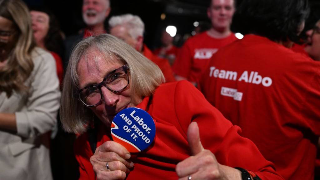 Der australische Sender ABC zeigte Bilder von lautstark jubelnden Labor-Anhängern in der roten Parteifarbe. Denn bereits wenige Stunden nach Schliessung der Wahllokale war nach Berechnungen verschiedener Medien klar, dass die Partei auf die 76 Sitze kommt, die für eine absolute Mehrheit im 150-köpfigen Unterhaus nötig sind. Die meisten Umfragen hatten Albanese vor der Wahl vor seinem Herausforderer gesehen.