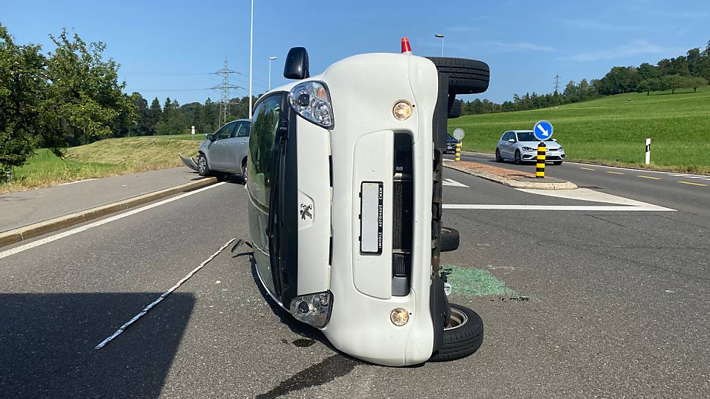 Auto kippt bei Zusammenstoss in Baar ZG zur Seite