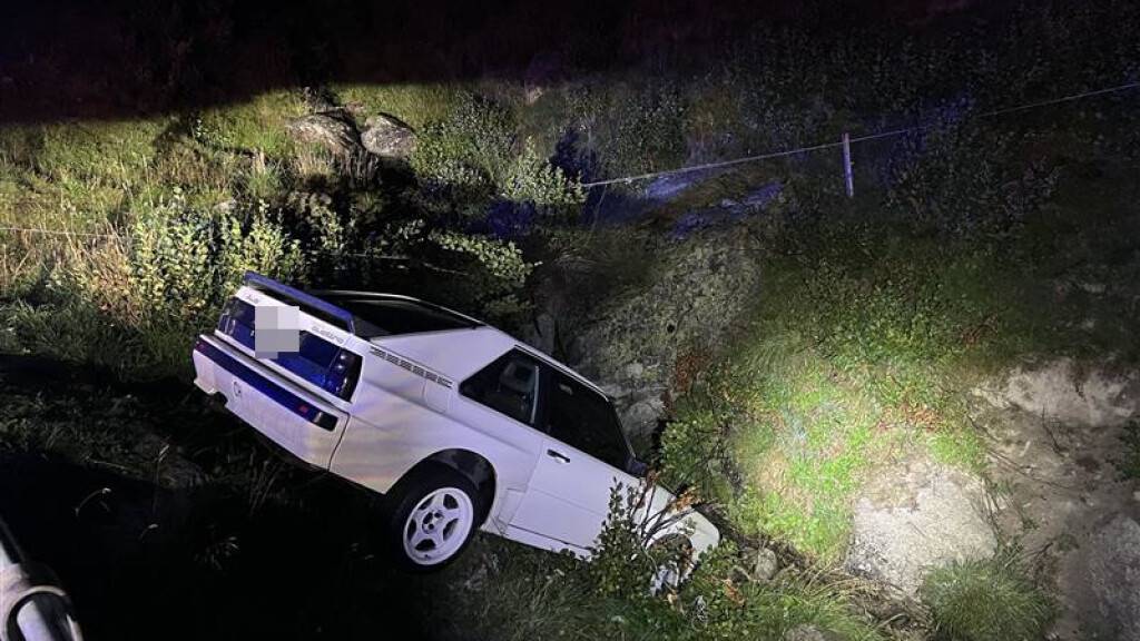 Auto kommt in Realp UR von Strasse ab und landet in Bachbett