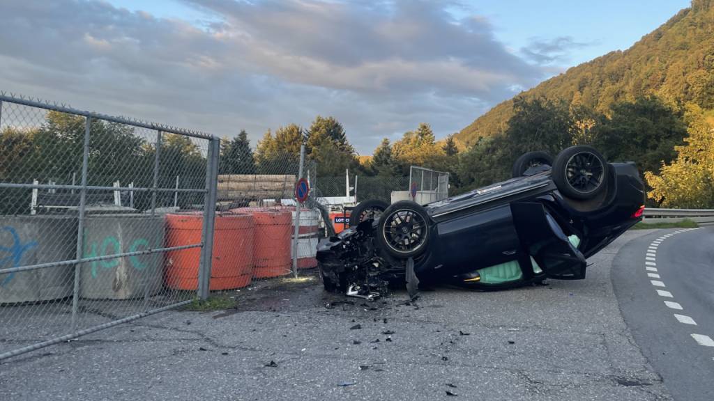 Auf der Rengglochstrasse hat sich am Montagabend ein Auto auf der Fahrbahn überschlagen.