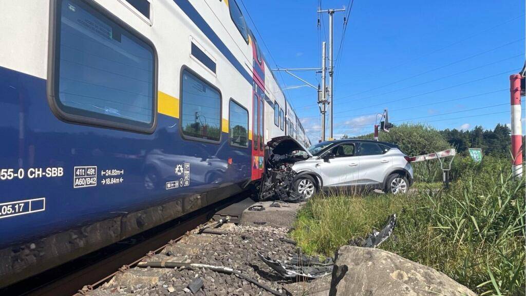Alle vier Fahrzeuginsassen konnten sich vor der Kollision aus dem Auto retten und blieben unverletzt. An der S-Bahn der Linie S15 entstand ein Sachschaden von mehreren zehntausend Franken.
