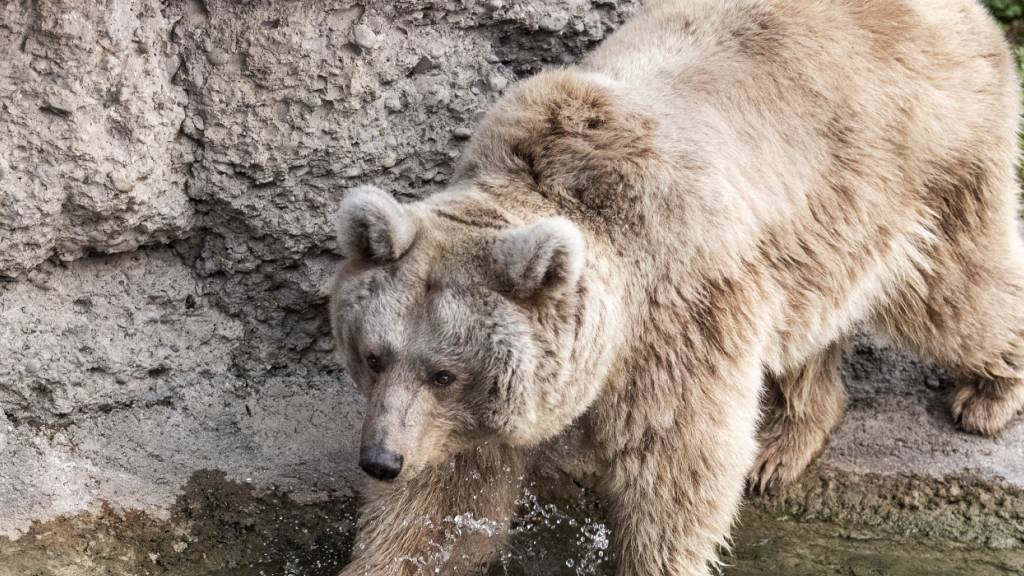 Ein Braunbär in einem Tierpark. Im Unterengadin lassen sich Braunbären fast jeden Frühling kurz blicken, auf der Suche nach Futter und Gesellschaft. (Archivbild)