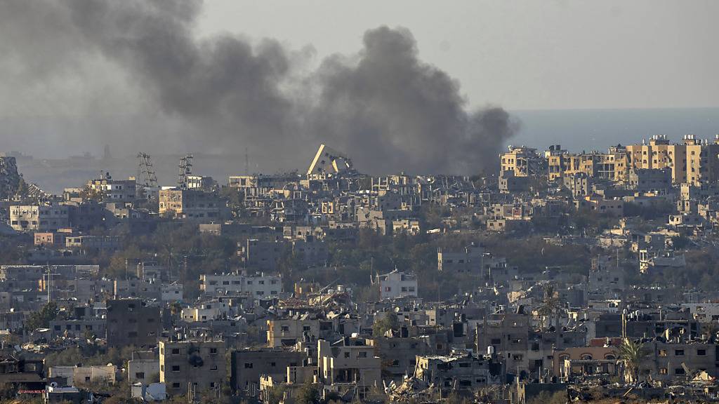 Rauch steigt nach einer Explosion im Gazastreifen auf, vom Süden Israels aus gesehen. Foto: Ohad Zwigenberg/AP/dpa