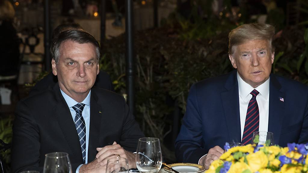 Der künftige US-Präsident Donald Trump (rechts) sitzt neben dem ehemaligen brasilianischen Staatschef Jair Bolsonaro bei einem Abendessen in Trumps Privatanwesen Mar-a-Lago im Jahr 2020. (Archivbild)
