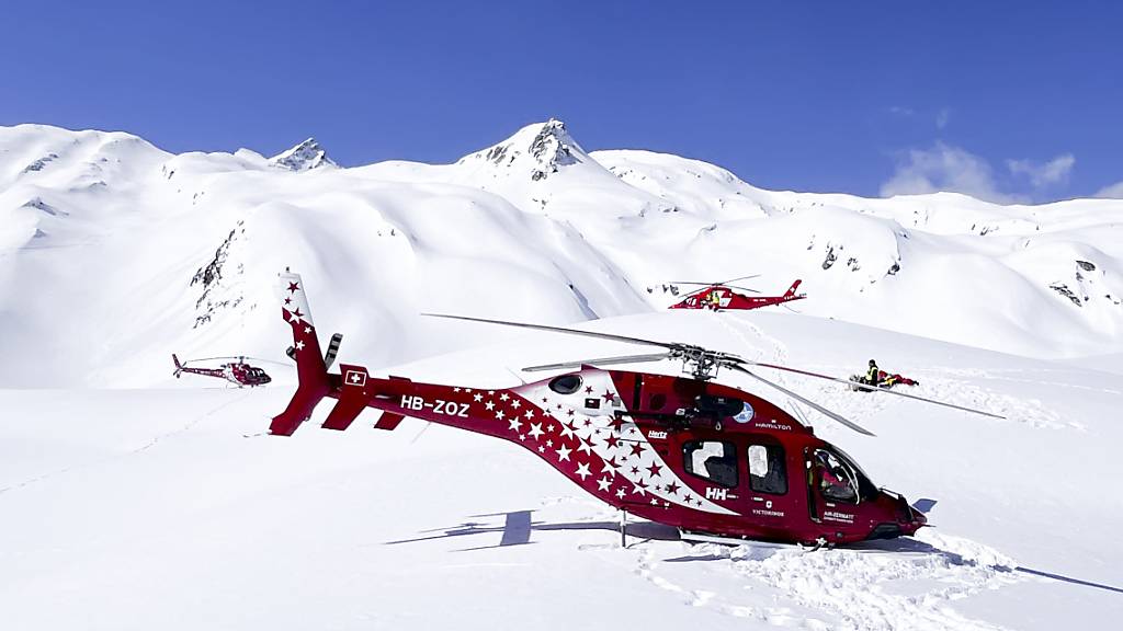Sieben Helikopter der Air-Glaciers, der Air Zermatt und der Rega begaben sich zum Einsatzort.