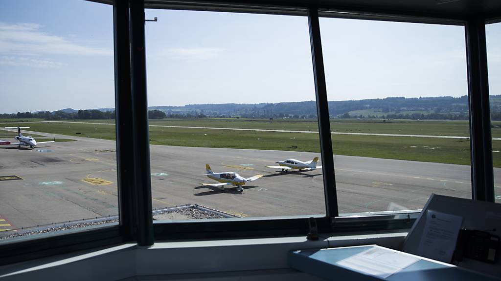 Blick aus dem Tower auf den Flughafen Grenchen, wo es am 13. September 2020 zu einem schweren Vorfall kam. (Archivbild)