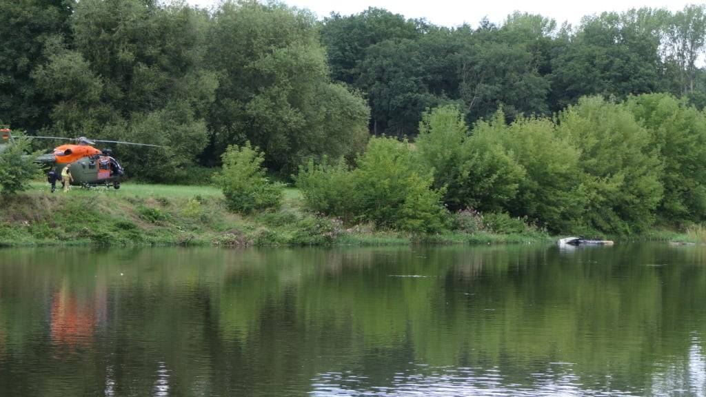 Vor Ort seien grosse Mengen Kerosin ausgetreten, das Wrack liege mittig im Fluss und sei schwer zugänglich, sagte der Feuerwehrsprecher der Deutschen Presse-Agentur (dpa). Die Einsatzkräfte seien damit beschäftigt, das Kerosin aufzufangen.