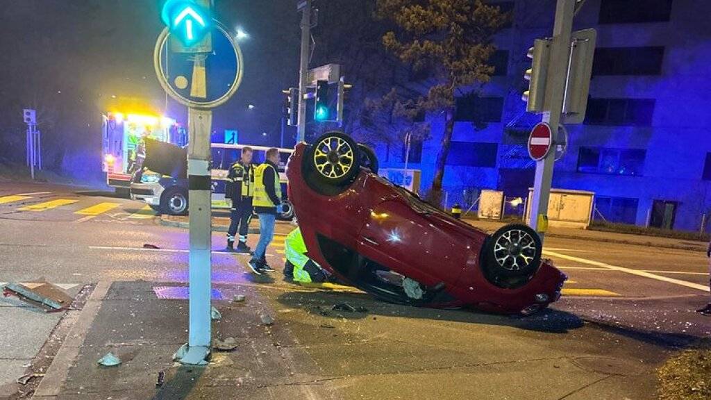 Der 23-jährige Autolenker war kurz nach 03.00 Uhr in einer langgezogenen Linkskurve aus zunächst unbekannten Gründen von der Fahrbahn abgekommen, wie die Zürcher Stadtpolizei mitteilte. Das Fahrzeug habe sich überschlagen und sei bei einem Lichtsignalmast auf dem Dach liegend zum Stehen gekommen.