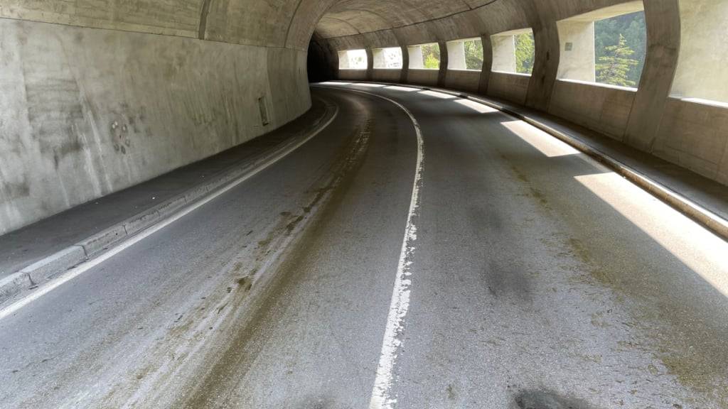 Die Stürze ereigneten sich oberhalb von Disentis ausgangs des Tunnels Tuf, wie die Kantonspolizei am Donnerstag mitteilte. Wie auf einem Polizeifoto zu sehen war, war die Fahrbahn in einer Tunnelkurve in beide Richtungen stark mit Kuhmist und Gülle verschmutzt.