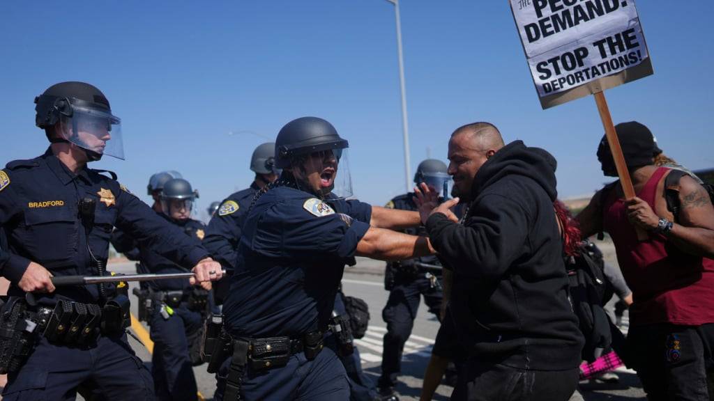 In Los Angeles kam es erneut zu Protesten und Festnahmen, allerdings weiter in überschaubarem Ausmass. Auch am Dienstagnachmittag Ortszeit versammelten sich an verschiedenen Orten der Westküstenmetropole wieder Hunderte Menschen, um gegen Trumps Abschiebepolitik zu protestieren. Ihnen steht eine wachsende Zahl an Polizisten gegenüber - und Soldaten, die Bundesgebäude in der Stadt beschützen.