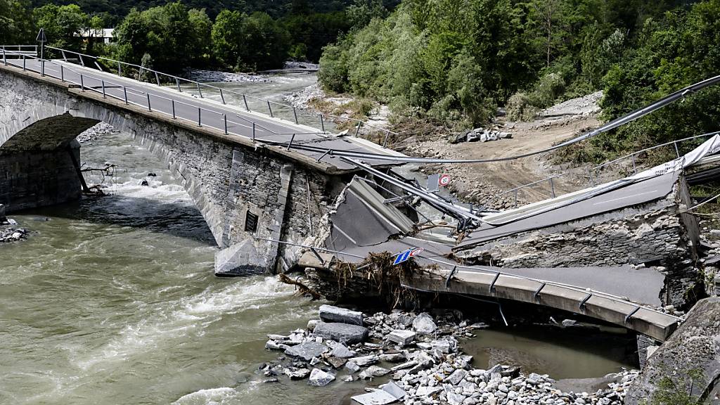 Nördlich der infolge der Unwetter zusammengebrochenen Visletto-Brücke soll in den nächsten Wochen durch die Schweizer Armee eine provisorische Brücke gebaut werden. Einen genauen Zeitplan konnte der Tessiner Notfallstab auch am Mittwoch noch nicht präsentieren.