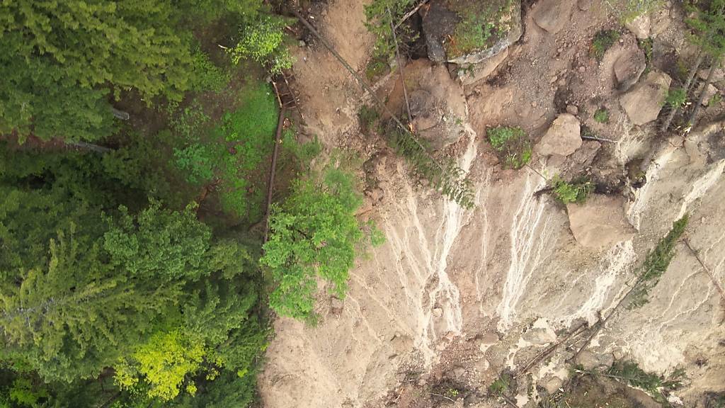 Somit seien nun die provisorischen Entwässerungsmassnahmen oberhalb der Rutschung umgesetzt, wodurch der ständige Wassereintrag in den Rutschhang deutlich reduziert werde. Weiter wurde eine automatische Alarmierung installiert.