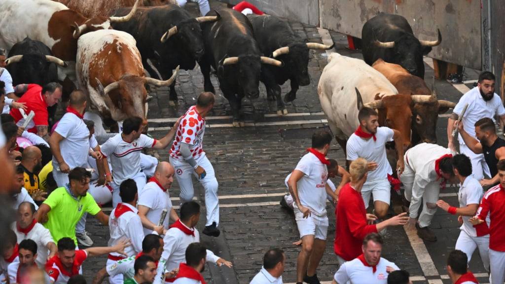 Die bis zu 600 Kilogramm schweren Bullen versuchen im Galopp meist - zum grossen Glück - reflexhaft über am Boden liegende Menschen zu springen - auch diesmal war dies der Fall. «Die Noblesse der Stiere», sagte einer der Kommentatoren des Laufs beim spanischen Sender dazu. Zugleich riefen sie allen Teilnehmern noch einmal ins Gedächtnis, dass es sich um «wilde Stiere, Athleten» handele, die am Abend im Stierkampf gegen Toreros anträten. «Das ist vielen Menschen einfach nicht klar», hiess es.