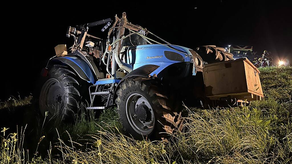 Traktor überschlägt sich bei Unfall in Steinerberg SZ