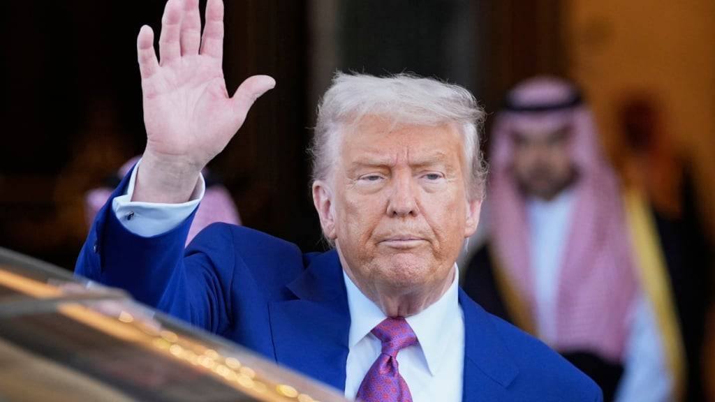 US-Präsident Donald Trump winkt, als er den Königspalast nach einer Unterzeichnungszeremonie mit dem saudischen Kronprinzen bin Salman verlässt. Foto: Alex Brandon/AP/dpa