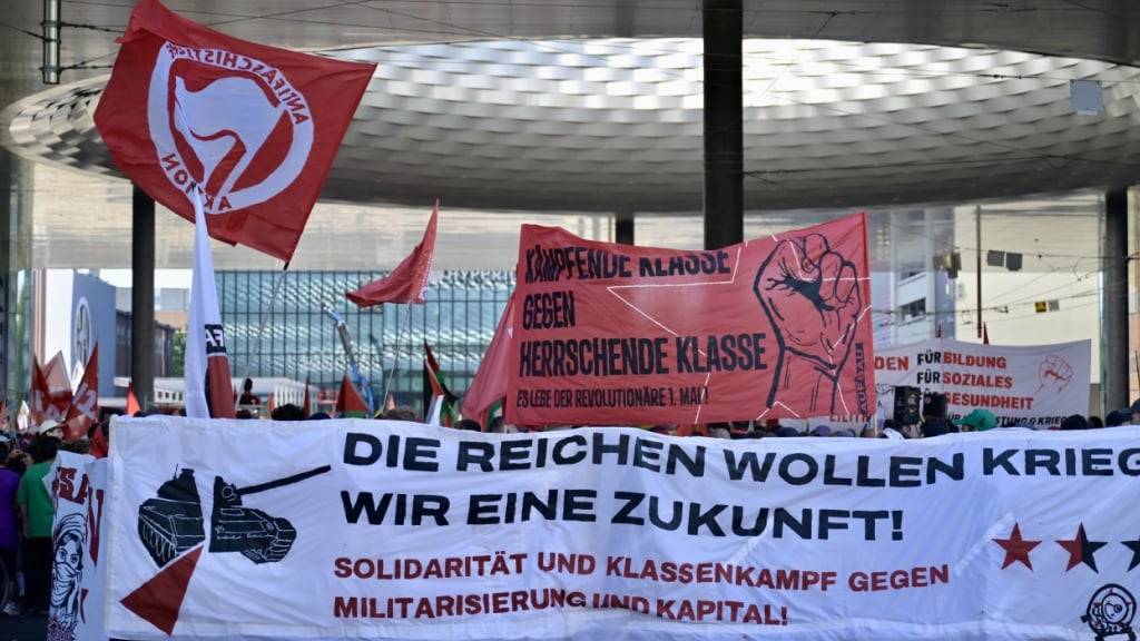 In den Parolen der traditionellen Teilnehmenden des 1. Mai-Umzugs wurden insbesondere angeprangert, dass die extreme Rechte auch in der Schweiz die politische Agenda vereinnahmt habe - unter anderem durch die Ausgrenzung von Minderheiten sowie Migrantinnen und Migranten.