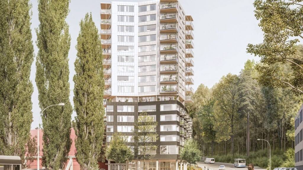 Das Bauprojekt sieht auf einer Fläche von 2500 Quadratmetern einen Sockelbau mit 23,5 Metern Höhe vor, der knapp 60 Wohnungen und Gewerbeflächen bietet. Langfristig könnte das Gebäude auf 50 Meter aufgestockt und um weitere 40 Wohnungen ergänzt werden, teilte die Projektentwicklerin und Bauherrin Eberli AG am Donnerstag in einem Communiqué mit.