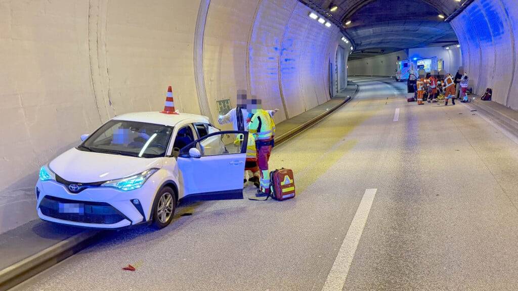Im Kirchenwaldtunnel werden zwei Personen bei einem Unfall verletzt
