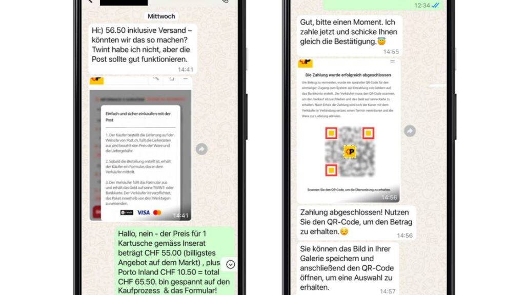 Mit einem QR-Code werden die Verkäuferinnen und Verkäufer dazu gebracht, eine von den Betrügerinnen und Betrüger kontrollierte Website aufzurufen. Dort sollen sie Kreditkarten- oder Bankdaten eingeben, damit sie den Betrag für die verkaufte Ware erhalten.
