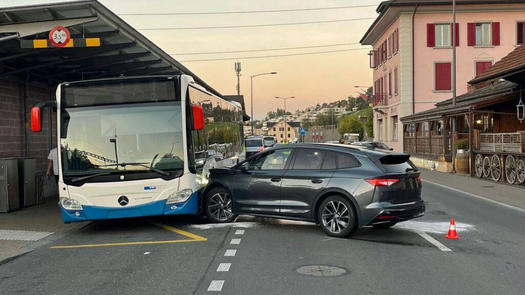 Auto prallt in Root LU nach Kollision gegen einen Linienbus