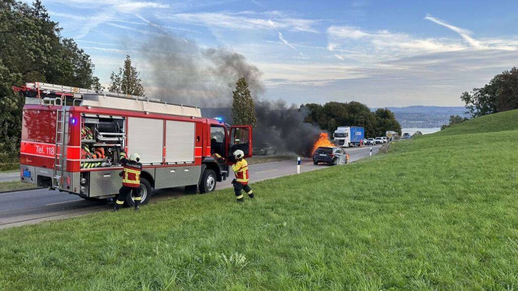 Auto fängt in Feusisberg SZ während der Fahrt Feuer