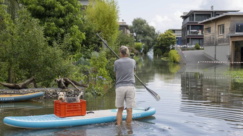 Im Quartier Ried bei Giswil am Sarnersee steht das Wasser am Dienstagvormittag mehr als knöcheltief.