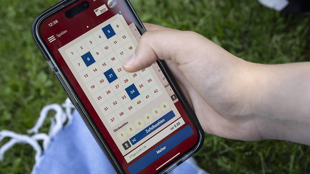 Eine Person füllt auf ihrem Smartphone ein Euromillions-Spiel in der Swisslos Euromillions-App aus. (Archivbild)