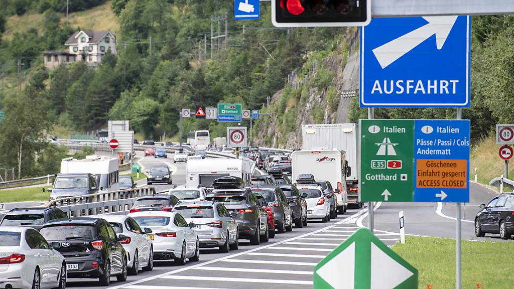 Auf dem Abschnitt der Autobahn A2 zwischen Erstfeld und Göschenen brauchten Automobilistinnen und Automobilisten fast zwei Stunden länger als bei normaler Verkehrslage, teilte der Touring-Club der Schweiz (TCS) auf Twitter mit.