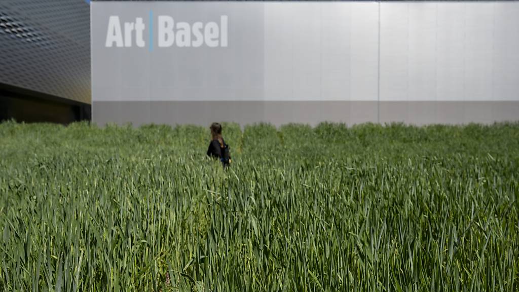 Die Installation «Honouring (Wheatfield - A Confrontation)» der US-Amerikanerin Agnes Denes empfängt die Besucherinnen und Besucher der Art Basel.