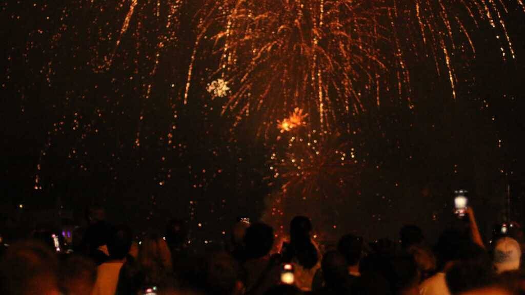 Alle warteten auf den Höhepunkt mit dem Feuerwerk, das um 23.00 Uhr begann und insgesamt 16 Minuten dauerte. Abgefeuert wurde es von zwei Schiffen oberhalb und unterhalb der Mittleren Brücke.
