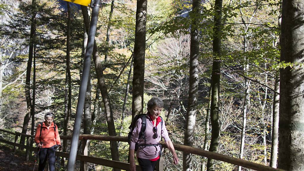 Wanderer wandern bei herrlichem Herbstwetter, anlässlich einer geführten Wanderung des Vereins Zuger Wanderwege, von Bad Ragaz durch die Taminaschlucht nach Pfäfers. (Archivaufnahme)