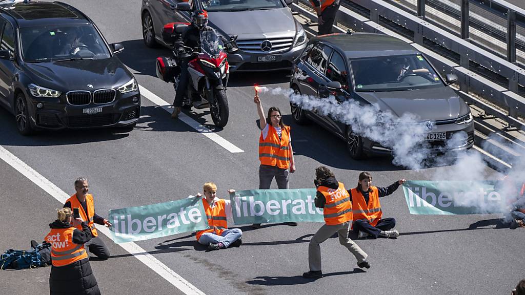 Klimaaktivisten mit kurzer Blockadeaktion im Gotthard-Stau