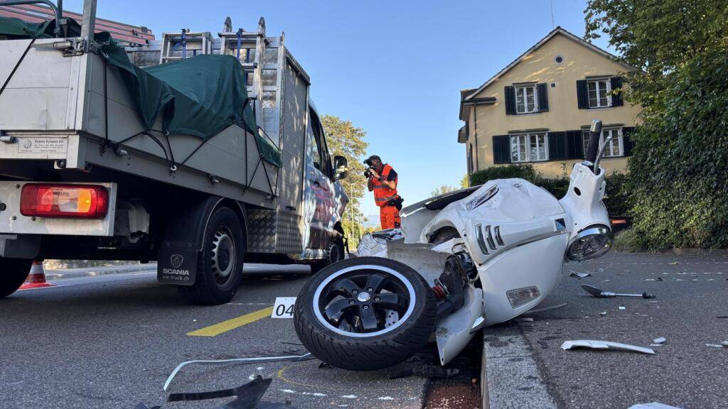 Bei der Kollision von Roller und Lieferwagen in Meilen wurde der Rollerfahrer schwer verletzt.