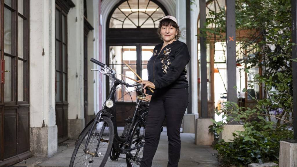 Schlagzeugerin Béatrice Graf gibt Konzerte mit Velostrom