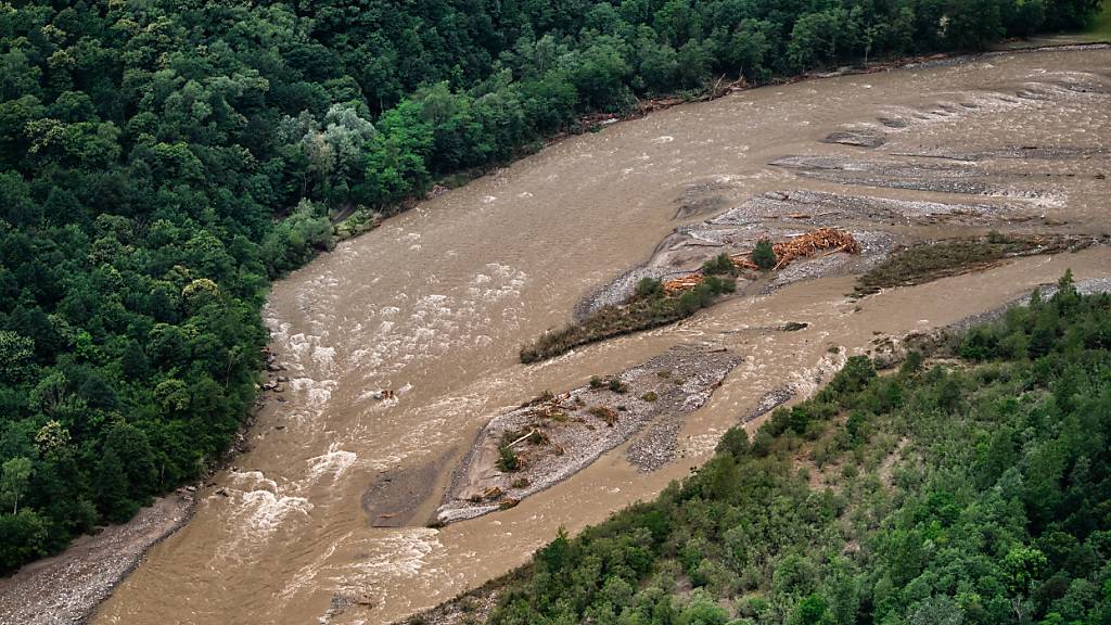 Die Suche nach den drei Vermissten im Maggiatal ist derzeit unterbrochen: Die hochgehende Maggia nach den Unwettern. (Archivbild)
