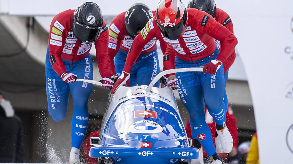 Der Schweizer Viererbob um Pilot Michael Vogt an der Heim-WM 2023 in St. Moritz