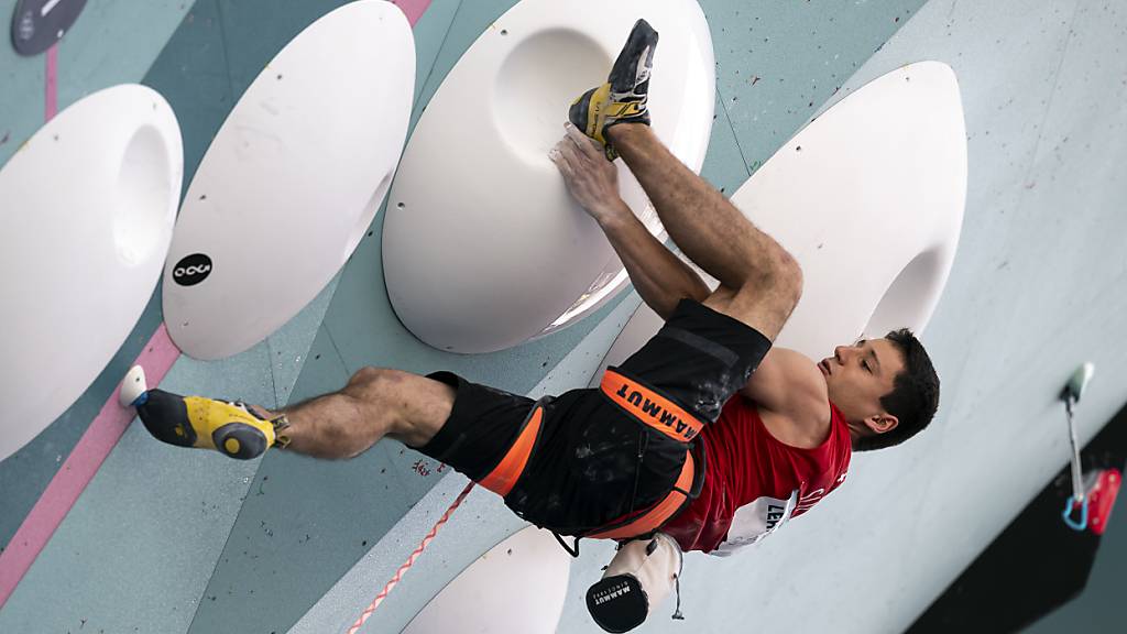 Der Olympia-Teilnehmer Sascha Lehmann gewinnt bei der Heim-EM in Villars-sur-Ollon die Goldmedaille in der Disziplin Lead.