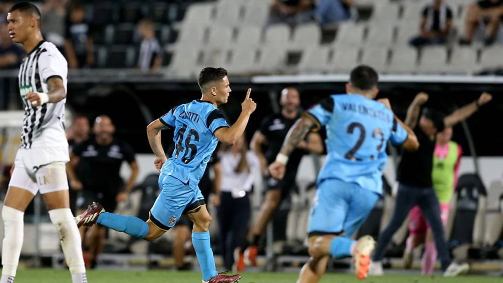 73 Minuten dauert es, bis die spielerische Überlegenheit des FC Lugano sich auch im Resultat widerspiegelte. Ein herrlicher Schuss von Aussenverteidiger Mattia Zanotti brachte das 1:0, das die Tessiner vor dem Rückspiel am nächsten Donnerstag in Thun in eine sehr gute Position bringt. Gewinnt der FC Lugano dieses Duell, hat er mindestens die Ligaphase in der Conference League auf sicher.