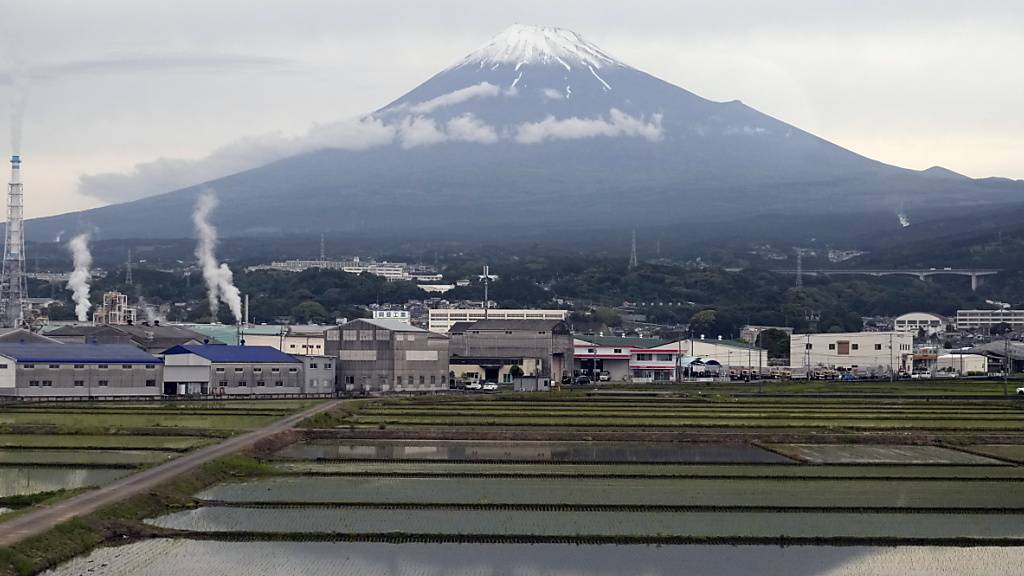 Aussichtspunkt zum Berg Fuji wird mit schwarzer Wand abgeschirmt