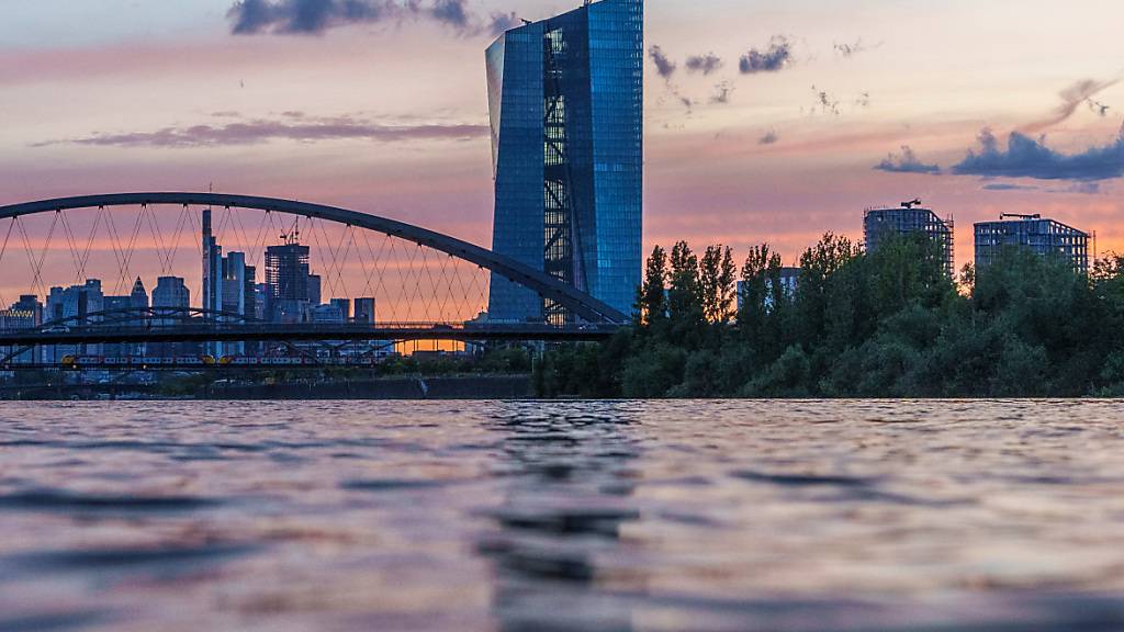 Die Wirtschaftsstimmung in der Eurozone ist im August stärker gesunken als im Vorfeld angenommen. Im Bild der Blick auf das Bankenviertel in der deutschen Wirtschaftsmetropole Frankfurt mit der Europäischen Zentralbank im Vordergrund. (Symbolbild)